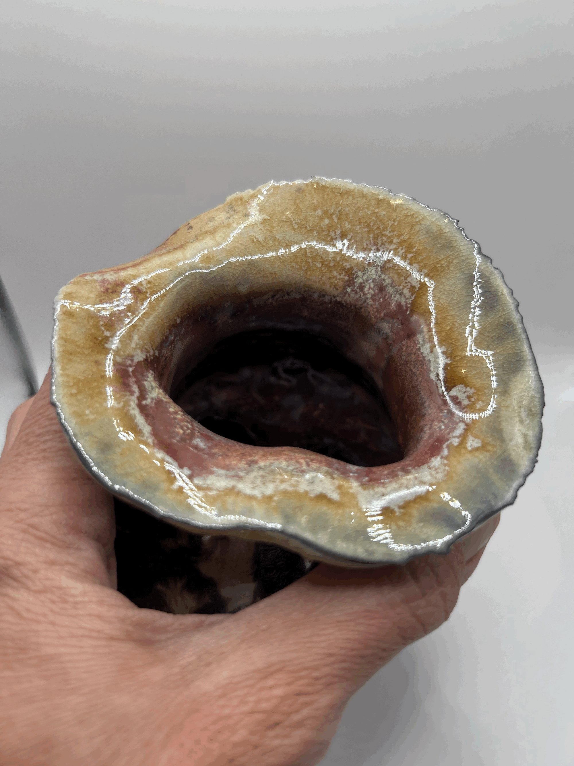 This piece is truly one-of-a-kind, both in surface and spirit, She holds the story of fire, ash, and intention.